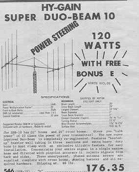 Hy-Gain Super Duo-Beam 10 (546) Make Hy-Gain Model SDB 10 Catalog # 546 Year ~1972 Orig Price $176.35 (1972) Description Hy-Gain Super Duo-Beam 10 HY-GAIN ANTENNAS Hy-Gain Super Duo-Beam 10 – Henshaw’s 1972-1/2 Catalog